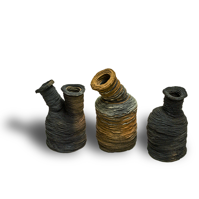 Three bottles / heights: 20; 25; 19cm - 2012 / wood fired ceramic