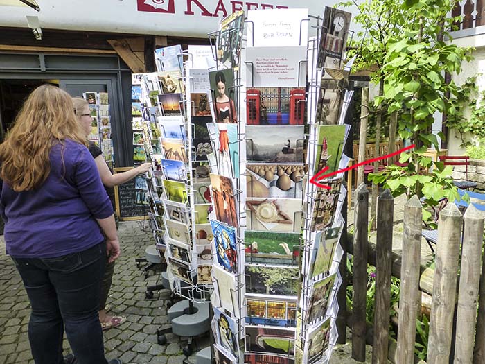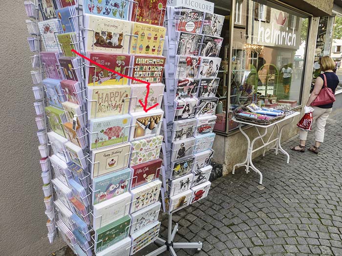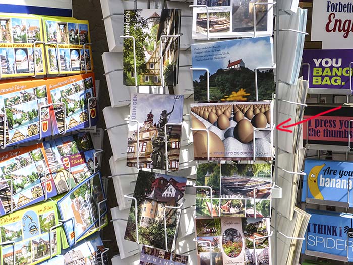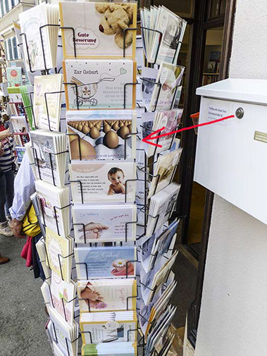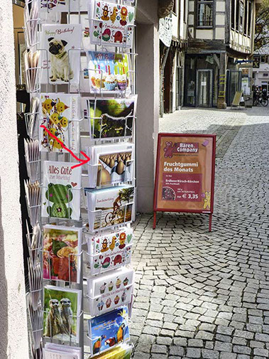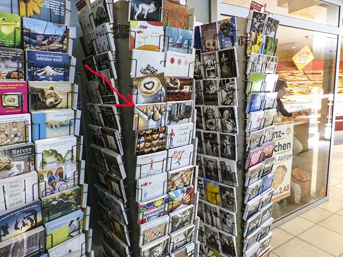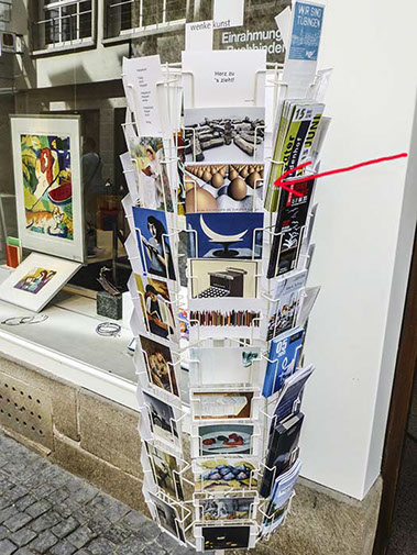 I spread the postcards in the city /in postcard stands. They cost nothing. I want that people find them by chance ...