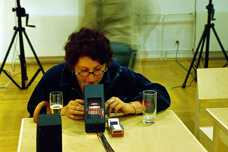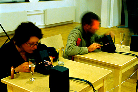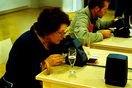 With the use of two slide viewers, both a picture and a sound archive became available to the visitors. The archive consists of X-ray pictures of objects within the gastro-enteric area. Some of the pictures are real, others are computer-manipulated. Each picture is linked to a computer-processed sound, which is like a voice from within. The clarity of the picture-sound-connection is achieved using control engineering and software developed by my self.