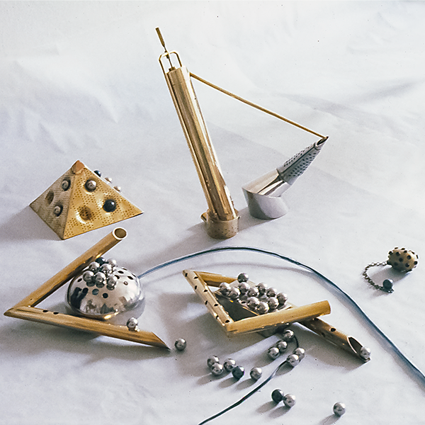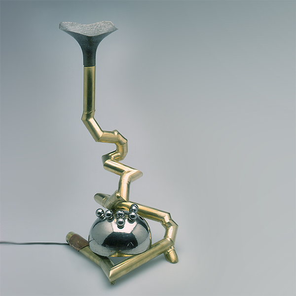 FORGED AND SOLDERED NICKEL, COPPER, BRASS / ROLLING BALL SCULPTURE AND LIGHT