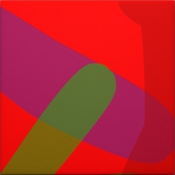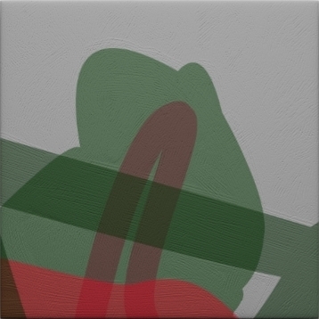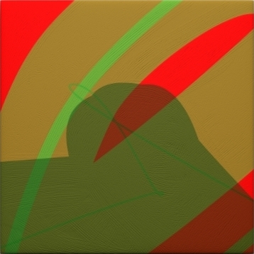 My software produces in a short time an "infinite number" of compositions. To make the pictures visible, the geometrical forms and colour blending are saved as a pixel picture. I study the pictures and make the decision which picture I paint.