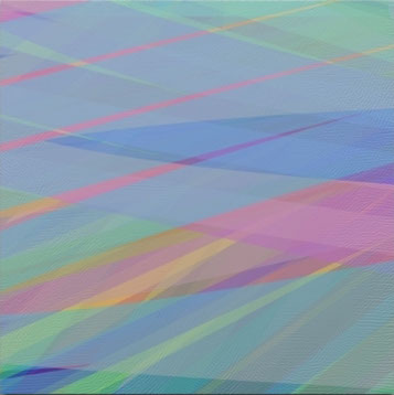 My software produces in a short time an "infinite number" of compositions. To make the pictures visible, the geometrical forms and colour blending are saved as a pixel picture. I study the pictures and make the decision which picture I paint.