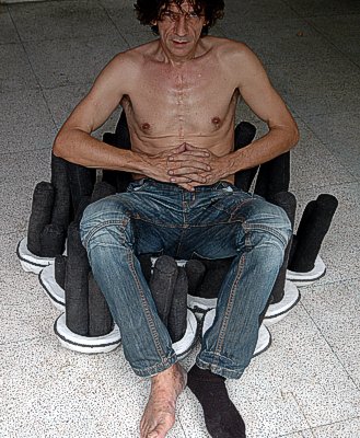coconutshell, cotton-bandages, acrylic paint, white-glue, mahogany-seeds-shell